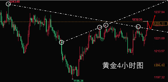 #2、反弹1238附近空单进场,止损4美金,目标1233-1230;
