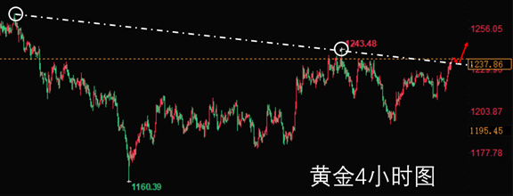 4小时图显示,黄金短线涨势稍稍放缓,KD以及RSI指标有自超买水平回落的趋势,不过。金价目前已经升破了云层的压制,且上行云有进一步走高的倾向,这或暗示,金价的回调空间或较为有限,此外,金价目前已经升破了1228美元附近的关键阻力,上行有望进一步上探1240美元附近阻力。操作上天硕斩金建议回调做多为主,反弹高空为辅,重点关注上方1240-1242一线阻力,下方1230-1232一线支撑;