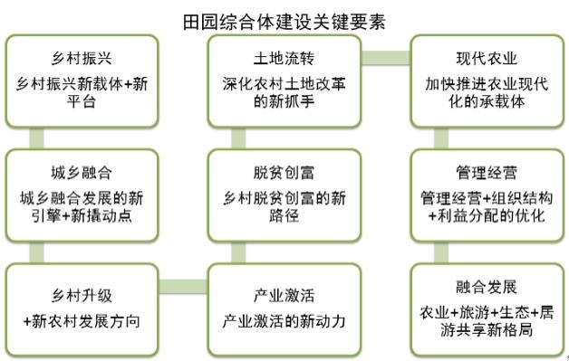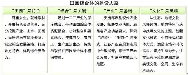田园综合体的建设,要深度挖掘乡村特色资源,倡导低碳、生态等科学理念,以乡村旅游资源与土地为基础,以乡村旅游休闲为脉络,以休闲商业为配套,以乡村休闲地产为核心,以高品质服务为保障,进行综合开发。