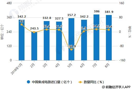 2018年1-8月中国集成电路进口统计及增长情况