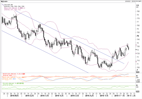周二亚市盘中,澳洲联储公布了利率决议。决议显示,澳洲联储维持1.5%利率不变,且声明基本没有新意,符合市场预期。议息会议之后,澳元渐渐进入高位获利回吐的阶段,直至纽约盘中,澳元兑美元自0.74高位附近回落接近0.73。受议息会议的影响,市场上恐会借机会继续进行获利抛空澳元,建议前期0.72之下建立的澳元多头清仓了结。 等候更佳的位置和时机继续入多澳元。