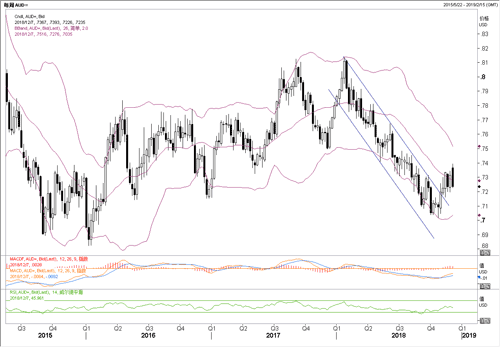 昨日澳洲公布数据显示:澳大利亚第三季度GDP年率录得0.3%,低于预期0.6%,为两年来最低增幅;澳大利亚第三季度GDP月率录得2.8%,低于预期3.3%。澳洲统计局周三公布的数据同时显示,家庭消费放缓,储蓄率下降。澳洲联储在前几个月的声明中称,创纪录的低利率将在今明两年推动经济增长3.5%左右,而今日公布的数据对这一说法是一种打击。在房价刚刚创下全球金融危机以来的最大跌幅之际,澳大利亚正面临经济增长放缓的局面,这可能促使消费者进一步控制支出。从而意味着2019年澳洲央行也就难以进入加息的行列。数据对于澳元的打击不小,近几个交易日连续拉阴已将上周全周的涨幅基本抹去。但从技术图形上看,月线级别图出现了一种阳包阴的格局,周线级别图也开始形成上升通道的形态,因此澳元此轮回落若是确认性的回踩,则后市澳元仍有望回升,今日留意官差0.7190-0.72这个价位区域的支撑性,若价位企立上述价位之上,可考虑布局回多澳元。