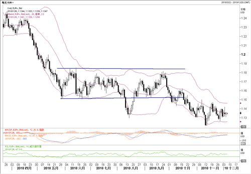 近期鉴于欧洲经济增长表现令人失望,国际评级机构惠誉已不再预期2019年欧央行会加息。从经济数据上看,11月欧元区PMI终值高于初值,但仍仅显示第四季GDP温和增长约0.3%,暗示该地区制造业仍处于疲弱状态;商业乐观情绪正处于2014年底以来的最低水平,随着我们进入2019年,这将加大经济增长的下行风险。因此欧元欲振作的话,还需自身有着良好的经济数据表现,短期内欧元缺乏上升的刺激因素。汇价再当前的下行通道内继续盘整,日线图动能指标相对较弱,预示上行势头略显不足。如果欧元/美元跌破短期趋势线1.1310则表明跌势还将延续,有望抵近11月低位1.1215。考虑本月有美联储议息会议的因素,该货币对的操作可以试行小仓量的空欧元。