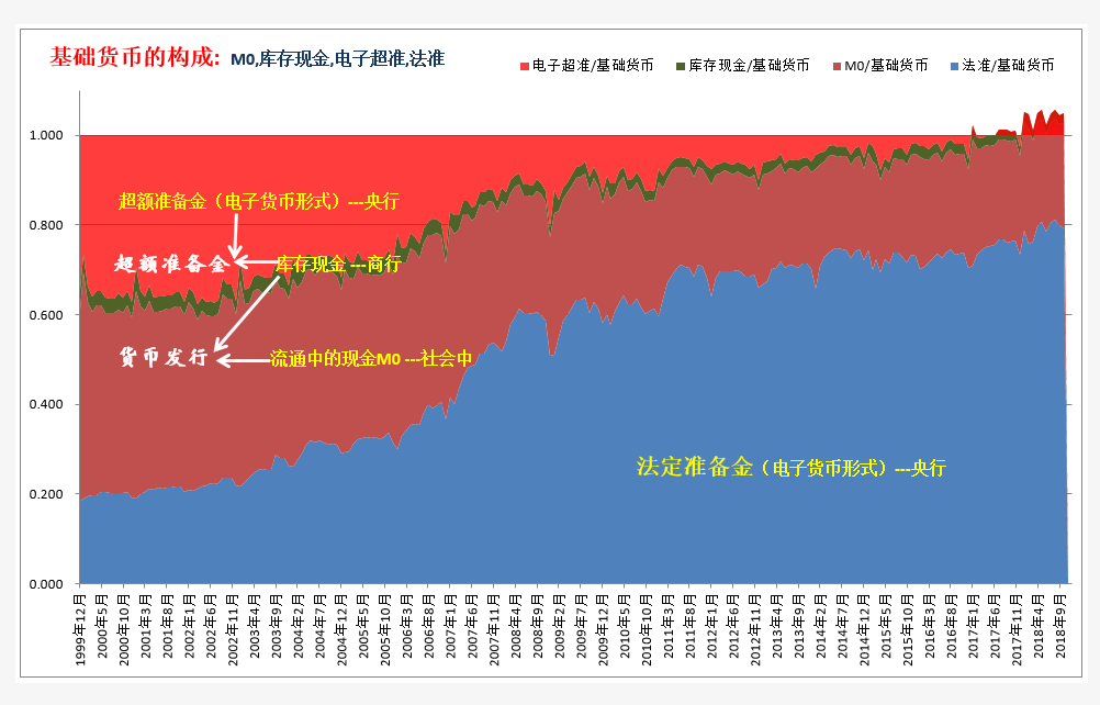 图中的红色部分,就是商行的流动性运行趋势情况,也就是商行的电子货币形态的超额准备金。哥跟踪分析这些数据多年了。