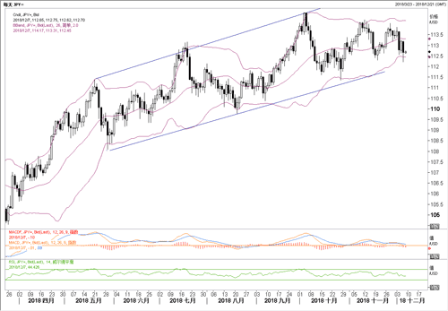 货币:美元/日元 阻力位2:114.10 阻力位1:113.50 即期价格:112.69 支持位1:112.20 支持位2:111.33