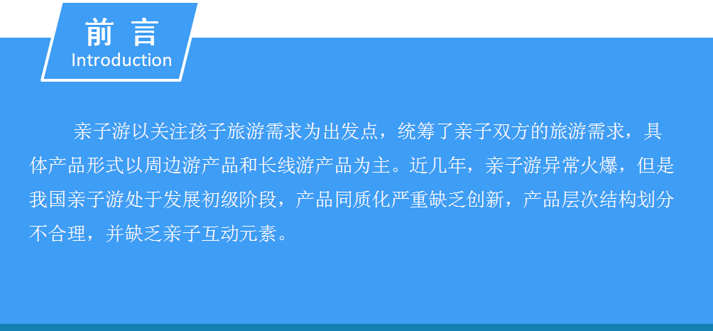 亲子游以关注孩子旅游需求为出发点,统筹了亲子双方的旅游需求,具体产品形式以周边游产品和长线游产品为主。近几年,亲子游异常火爆,但是我国亲子游处于发展初级阶段,产品同质化严重缺乏创新,产品层次结构划分不合理,并缺乏亲子互动元素。