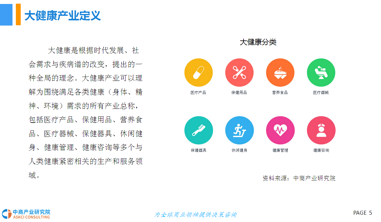 中商情报网讯:健康是人类永恒的主题也是社会进步的重要标志,健康已成为新世纪人们生活的基本目标。目前,“健康中国”上升为国家战略,政府推进健康中国建设,深化医药卫生体制改革,大健康产业迎来新的发展机遇。