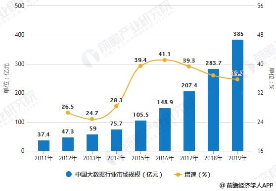 2011-2019年中国大数据行业市场规模统计及增长情况预测