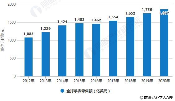 2012-2020年全球手表零售额统计情况及预测