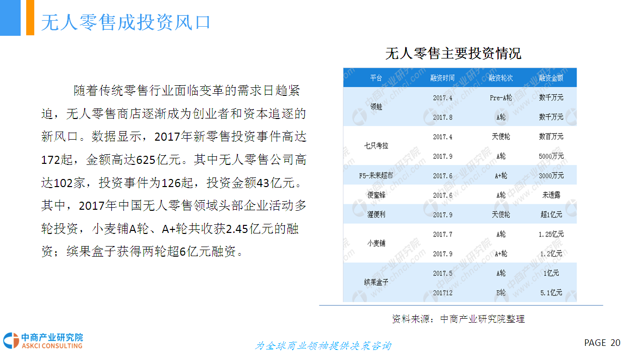 自动售货机是能根据投入的钱币自动付货的机器。自动售货机占地体积小,租金成本低,需要人力较少,满足人们即时便利性消费需求,深受市场欢迎。2017年,随着“新零售”风潮席卷全国,自动售货机“时来运转”,一跃成为众多玩家争相追捧的“香饽饽”。企业玩家和公共区域投放的自动售货机数大增,预计2020年自动售货机投放量将超200万台。