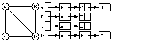 2 邻接链表,对于任何一个node A,外挂一个邻接链表,如果存在 A->X这样的边,就将X链入链表。 这种表示方法的优点是节省空间,缺点是所有链表都存在的缺点,地址空间的不连续造成缓存命中降低,性能有不如临界矩阵这样的数组。