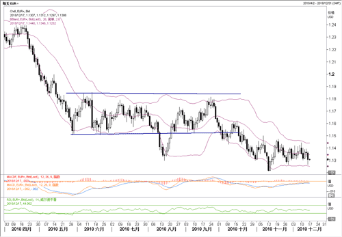 上周欧洲央行本周的政策会议仅解决德拉基货币政策的一个问题,还有一个问题才是困扰欧元多头的关键。自上次金融危机以来,欧洲央行终结购债对于欧元区和欧元而言都是具有历史性意义的。但这只是欧洲央行关键货币政策的一个方面,另一个重要方面则是负利率政策,只有这方面也做出调整才会最终吸引投资者归来。上周四的欧央行利率决议方面仍然在利率趋向上未有任何的松口,这将令欧元失去了兑美元上升的重大基础。因此预料欧元尚需相当一段时间进行磨底盘整。日线图上如果汇价彻底跌穿1.13,则横盘区间恐要下沉到1.13-1.11 的区间内。考虑本周美联储的议息会议来临,暂放弃抄底多头欧元的想法。短线若汇价接近1.1330考虑空欧元。