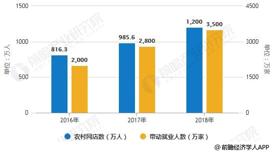 2016-2018年农村网店数、带动就业人数统计情况及预测