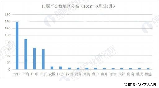 2018年7-9月中国P2P网贷行业问题平台地区分布情况