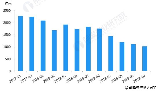 据前瞻产业研究院发布的《中国P2P网贷行业市场前瞻与投资战略规划分析报告》统计数据显示,2018年10月P2P网贷行业的成交量为1022.67亿元,环比下降7.65%,同比下降53.17%。本月行业成交量延续上月下降趋势,但下降速度基本趋于稳定。本月成交量下降主要是受国庆小长假影响,再加上合规检查在即,不少平台主动压缩规模。截至2018年10月底,P2P网贷行业累计成交量已高达7.81万亿元,今年有望突破8万亿大关。