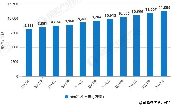 整体汽车市场的持续增长促进汽车半导体市场的需求提升。据前瞻产业研究院发布的《中国汽车整车制造行业需求前景预测与投资战略规划分析报告》统计数据显示,全球汽车产量有望从2017年的9704万辆增至2022年的11359万辆,年复合增长率为6.5%。