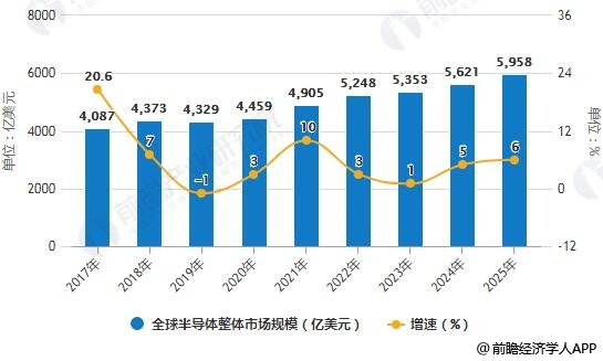 2017-2025年全球半导体市场规模统计及增长情况预测