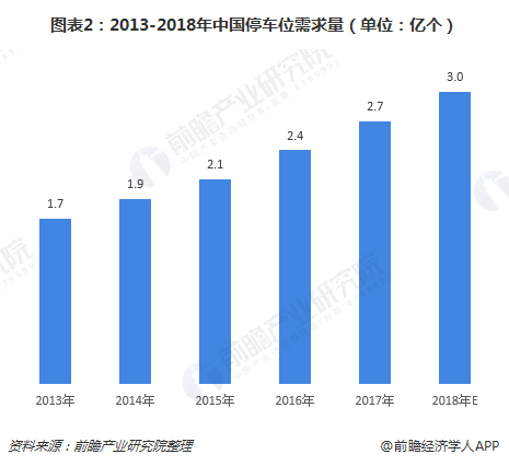 汽车保有量的增加,带来了停车需求的飙升,预计2018年停车位需求在3.0亿个左右。而相比于日益增长的汽车保有量,我国停车位数量严重偏低,停车设施建设速度远滞后于汽车保有量增长速度,停车位供给缺口巨大。