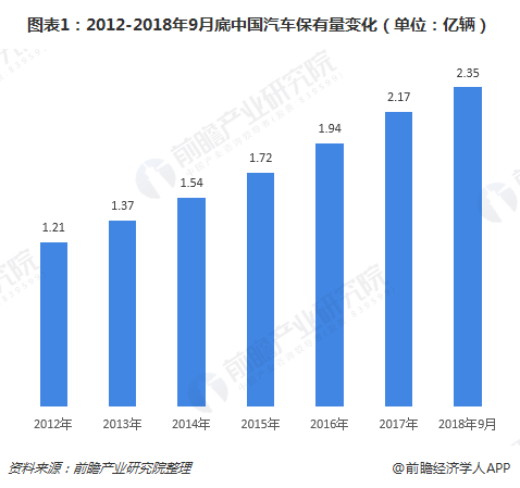 随着国民经济快速增长,居民消费水平日益增高,汽车不再是昂贵的消费品,在国内已实现了大规模普及,汽车保有量节节攀升。根据公安部的数据统计,截至2018年9月底,全国机动车保有量达3.22亿辆,其中汽车保有量2.35亿辆;2018年以来,全国私家车保有量月均增加161万辆。这意味着过去17年,我国汽车保有量从1609万辆增长到2.35亿辆,平均增长率达到14.3%。