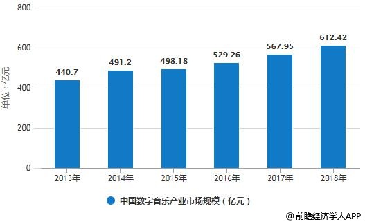2013-2018年中国数字音乐产业市场规模统计情况及预测
