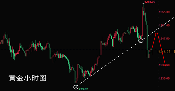 4小时图显示,隔夜金价大幅下跌,现正在测试云图云层的支撑,KD以及RSI指标正加速下跌,这增加了黄金短线的下行风险。金价已经跌穿了60周期均线的支撑,且短周期均线有加速回落的趋势。这也使得金价进一步承压。综上所述,操作上天硕斩金建议反弹高空为主,回调做多为辅,下方重点关注1236一线支撑,上方关注1248一线阻力;