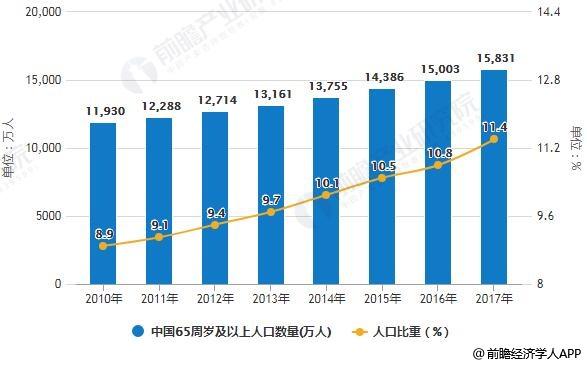 2、至少3%的老年人口对养老公寓存在需求,而我国老年人口规模庞大,且仍在持续增长当中,未来潜在需求非常可观。截止到2017年我国人口中65周岁及以上人口15831万人,占总人口的11.4%。60周岁及以上老龄人口为24090万人,占总人口的17.3%,新增老龄人口连续四年超过800万人。
