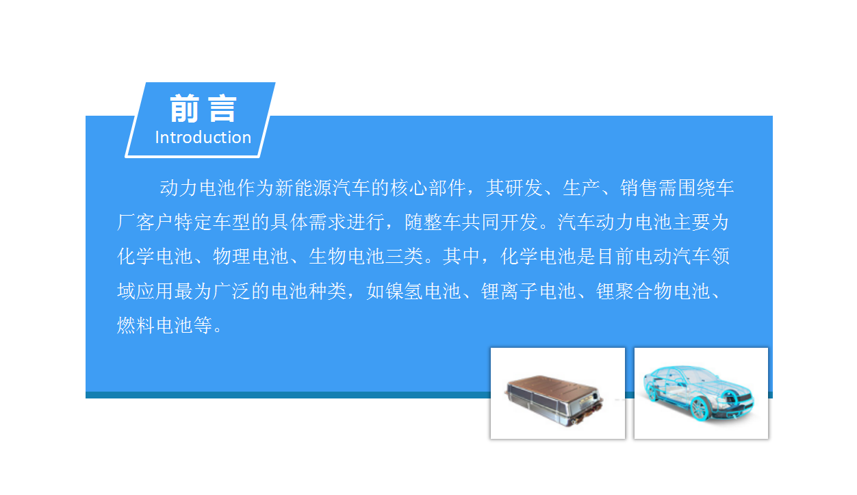 动力电池作为新能源汽车的核心部件,其研发、生产、销售需围绕车厂客户特定车型的具体需求进行,随整车共同开发。汽车动力电池主要为化学电池、物理电池、生物电池三类。其中,化学电池是目前电动汽车领域应用最为广泛的电池种类,如镍氢电池、锂离子电池、锂聚合物电池、燃料电池等。