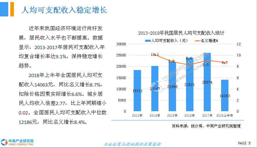 2018上半年中国GDP以6.8%速度保持高速增长,这也是中国经济增速连续12个季度保持在6.7—6.9%区间,城镇居民家庭人均可支配收入较上年增长8.7%;近30年我国国内旅游人次增长了近20倍,旅游消费活动将有利于推动箱包市场不断发展壮大。