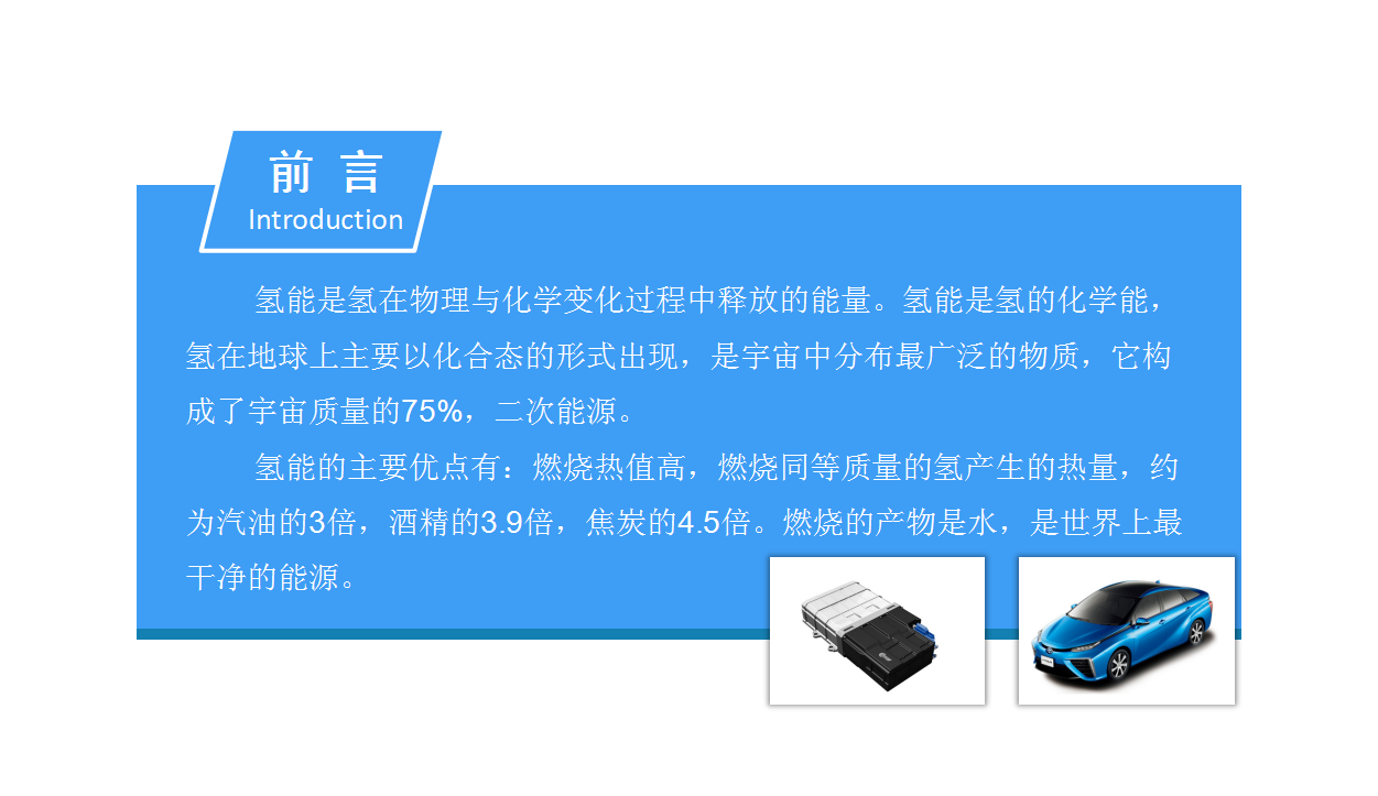 氢能的主要优点有:燃烧热值高,燃烧同等质量的氢产生的热量,约为汽油的3倍,酒精的3.9倍,焦炭的4.5倍。燃烧的产物是水,是世界上最干净的能源。