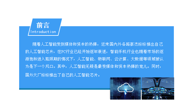 随着人工智能受到媒体和资本的热捧,近来国内外各路豪杰纷纷推出自己的人工智能芯片,在PC行业已经开始逐年衰退,智能手机行业也随着市场的逐渐饱和进入瓶颈期的情况下,人工智能、物联网、云计算、大数据等领域被认为是下一个风口。其中,人工智能无疑是最受媒体和资本热捧的宠儿。同时,国外大厂纷纷推出了自己的人工智能芯片。