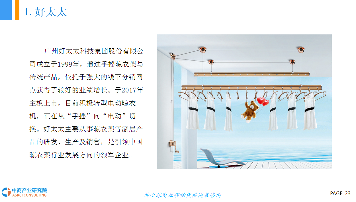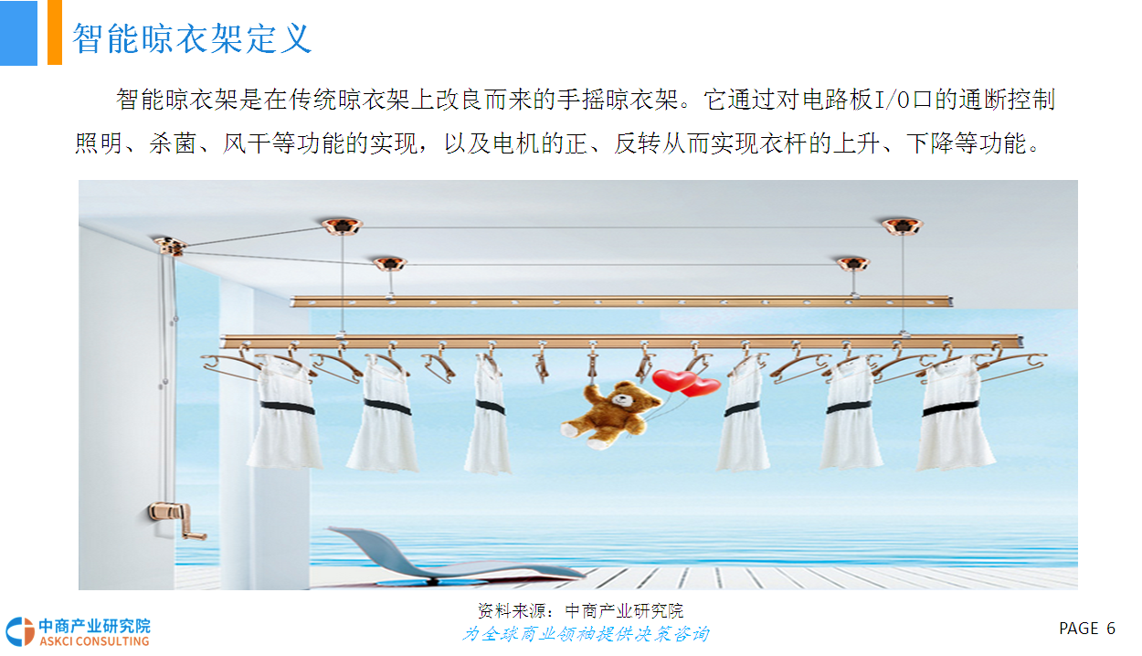 在智能化时代下,人们的生活模式发生了翻天覆地的变化:智能窗帘、智能扫地机器人、智能家电、智能晾衣架等产品相继被推出,并以较高的性价比越来越贴近用户的内心。作为智能家居众多产品中的一个分支,近年来生活家居产品中的“阳台家电”智能化不断兴起,智能晾衣架深受消费者的喜爱。