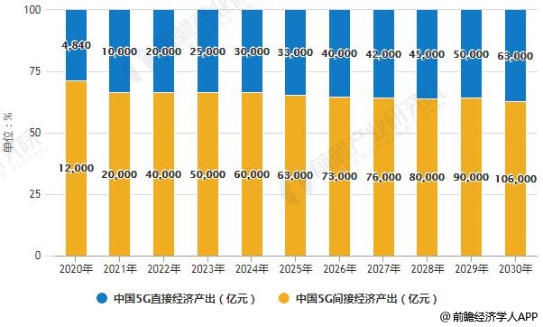 2020-2030年中国5G直接和间接经济产出统计情况及预测
