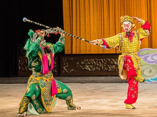 所以,问题来了:我们有细节表现更丰富的手法,足以使得亿万观众看清晰,为什么非要去看京戏呢?同理,前面也有同学提到,京戏里头的动作也往往是因“没办法”。那时候找不到更好的展现行军的手法,就让八个龙套上去穿个场。那时候它没办法,只能“一步万水千山,两步腾云驾雾”,你说他要是能一蹦二百米,他能不蹦吗?人是喜欢看真的腾云驾雾呢?还是喜欢看假装在腾云驾雾呢?明明可以直接看孙悟空腾云驾雾,提着金箍棒踏碎凌霄宝殿的电视剧和电影,就没必要看他挥舞着带毛黑棒棒,假打绿衣软口小矬刀。