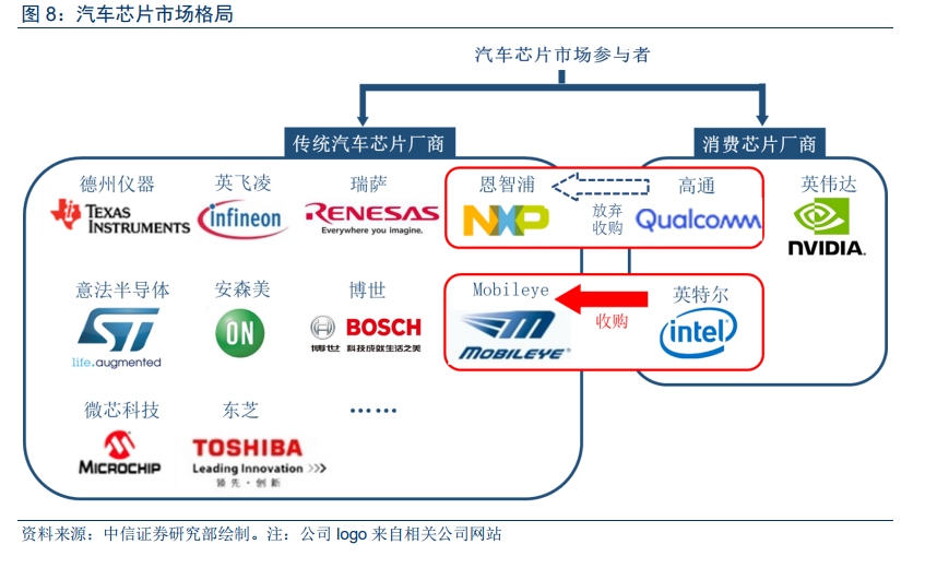 无人驾驶提升算力需求,主控芯片成为新增市场。传统汽车的功能芯片仅适用于发动机控制、电池管理、娱乐控制等局部功能,尚无法满足高数据量的智能驾驶相关运算。近年来,伴随智能驾驶渗透率提升,全球芯片巨头纷纷进军汽车产业,推出具备 AI 计算能力的主控芯片,担当自动驾驶汽车的“大脑”功能。我们认为,主控芯片市场规模有望快速成长,IHS预测 2020 年可达 40 亿美元。