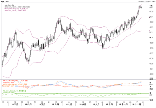 昨天原油价格实现大V反转,带动加币反弹。目前三大因素将继续影响加元汇率表现,分别是石油输出国组织(OPEC)的减产行动实施效果、美国众议院的控制权交接以及中美贸易谈判进程,这些因素均将影响原油等风险资产的表现,从而直接推动加元走势技术图上,美/加日线图自1.2062展开上涨波浪,目前已过三浪,但动能仍充足。指标方面RSI向上,MACD双线零轴以上金叉且红色动能柱扩张,操作上建议介入美/加多头,上不设目标,关注原油是否反弹,止损放1.35