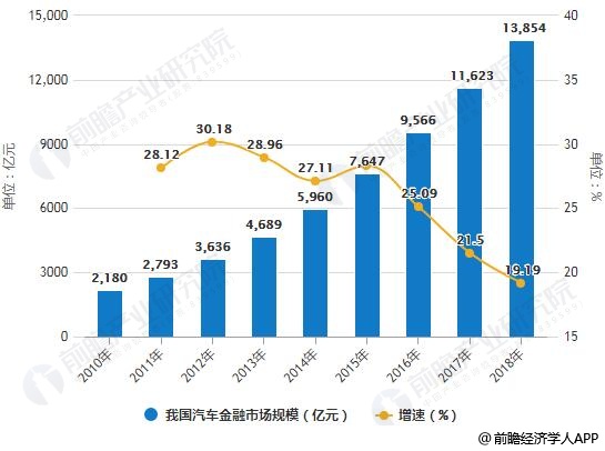2010-2018年我国汽车金融市场规模统计及增长情况预测