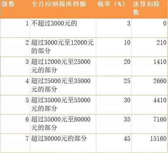如果你月薪不足5000元的如何算?只需稍加调整,将年终奖发放当月的工资与5000元的差额算出来,再适用公式:应纳税额=(雇员当月取得全年一次性奖金-雇员当月工资薪金所得与费用扣除额的差额)×适用税率-速算扣除数