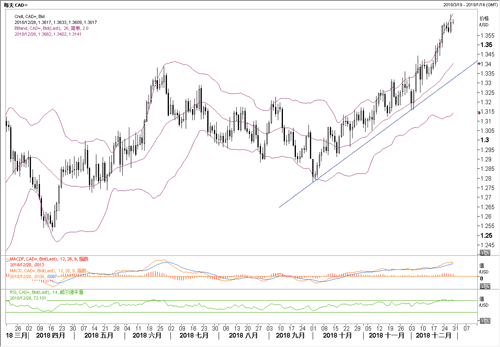 昨天美元/加元继续上涨,一度突破1.3660,触及19个月来新高,短期该汇价走势跟原油价格走势高度正相关,油价暂未出现扭转颓势的信号,依然是空头行情。技术图上,美/加日线图呈现上涨趋势,上方阻力在1.38,离此阻力位仍有一段距离,操作上建议介入美/加多头,上不设目标,关注原油是否反弹,止损放1.35