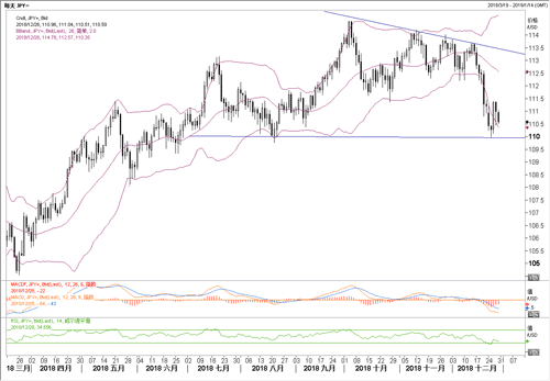 昨天美/日微跌,该汇价未来数周将围绕贸易摩擦、全球股市振幅等因素左右,美元/日元整体以空头行情为主,日线图汇价从110展开反弹,并未攻破8月21日的前期低点,但随后两天继续下跌,汇价下破维加斯通道实现回踩后继续下跌,配合技术指标布林带开口向下,只要不破111.6,操作上维持强烈建议介入美/日空头,第一目标108,第二目标105.4,止损放111.6。