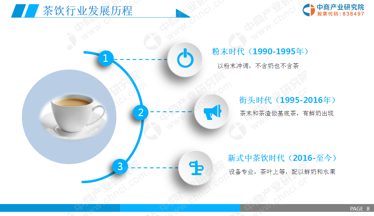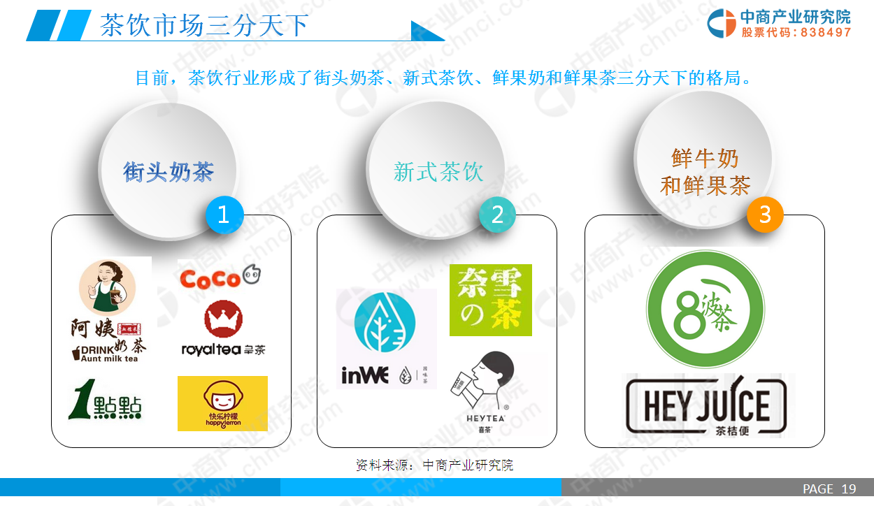 茶饮相信大家都很熟悉,最先在市场上出现的是冲粉奶茶,基本就是以果味粉为主的奶茶产品,在大街上随便摆一个小摊,用热水直接勾兑,就可以快速搞定一杯奶茶。而第二个阶段的则是瓶装奶茶,以统一奶茶为例,当时迅速火爆全球。而接下来的第三个阶段则是以皇茶、贡茶为代表的手摇茶,现调现摇的调制过程讲究表演性,使用机械设备多为专业定制,奶味香滑饱满,有茶香有奶味。而现阶段的新式茶饮则是以喜茶,奈雪的茶和一起茶为代表,在产品上取代粉末勾兑,采用现泡茶汤、新鲜牛奶,以及与各种水果相互碰撞的茶饮,更加注重现代人们生活的质量与健康。而且在空间设计上越来越惊艳,受到不少年轻人的喜欢。