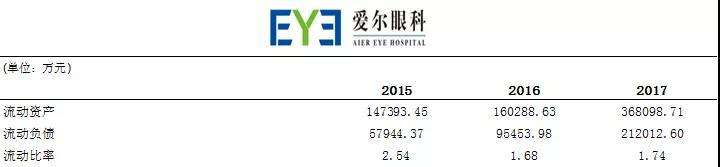 我们现在来计算一下爱尔眼科的流动比率,如以下图表所示:
