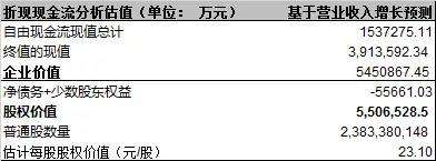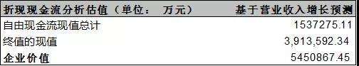 这样,我们就计算出爱尔眼科基于营业收入增长预测而估算的企业价值为:545亿元。