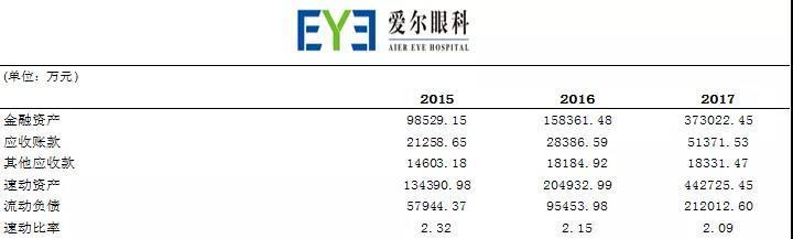爱尔眼科资产资本表中的金融资产全部属于速动资产,经营流动资产中的应收账款和其他应收款属于速动资产。现在我们来计算一下爱尔眼科的速动比率,如以下图表所示: