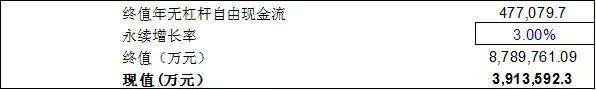 我们计算出的爱尔眼科终值年未杠杆自由现金流为:47.7亿元。