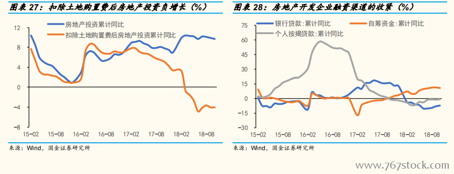 房地产企业融资也逐步收紧。2016 年 10 月,上交所、深交所发布《关于试行房地产、产能过剩行业公司债券分类监管的函》,明确房地产企业公司债募集资金不得用于购置土地。11 月,发改委发布《关于企业债券审核落实房地产调控政策的意见》,限制房地产开发企业发行企业债券用于商业性房地产项目。2017 年 4 月,银监会发布《关于银行业风险防控工作的指导意见》,要求严厉打击“首付贷”等行为,严禁资金违规流入房地产领域。12 月,银监会发布《关于规范银信类业务的通知》,明确信托资金不得违规投向房地产。2018 年 1 月,银监会《关于进一步深化整治银行业市场乱象的通知》,进一步提到违反房地产政策是整治工作的要点之一。