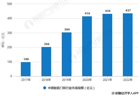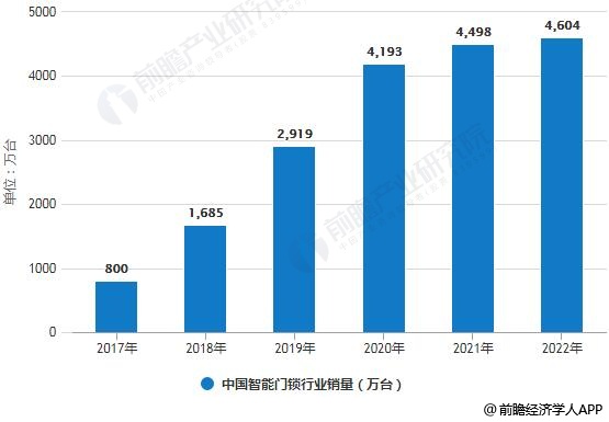 2017-2022年中国智能门锁行业销量、市场规模统计情况及预测