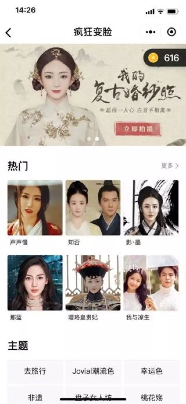 迭代前的“疯狂变脸”小程序界面,沿用App的风格,图片由“她拍”提供