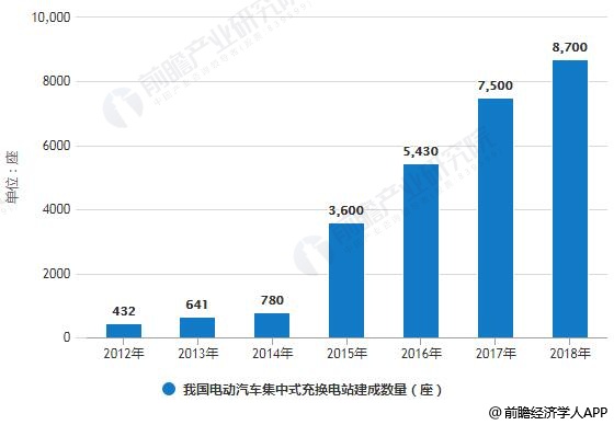 2012-2018年我国电动汽车集中式充换电站建成数量统计情况