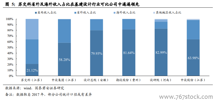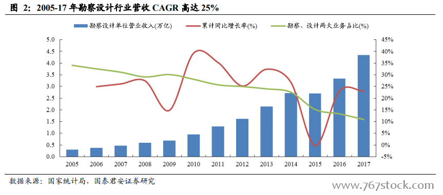 从基建设计领域看,基建设计公司 2017 年密集上市。1)下文主要分析勘察设计(亦即设计咨询)中的基建设计分支,基建设计主要指交通基建领域的勘察设计业务;2)基建设计公司主要包括交通基建类央企国企下属咨询单位及部属院、省级交通工程设计咨询企业(目前上市的基建设计公司多为原省院)、其它交通工程设计咨询企业等,目前无大型建筑央企将基建设计业务作为主业;3)行业发展早期,国内多数大型设计院隶属事业单位,在 1995-2005 年行业进入全面改制期,多数设计院已改制为企业单位;4)除苏交科/中设集团分别于是 2012/2014 年上市外,其他基建设计上市公司均为 2017 年密集上市;4)仅设计总院是国企。