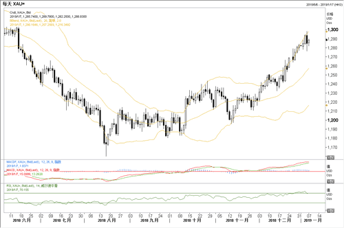 美国政府仍然停摆着,民主党控制的众议院通过了支出法案,但由于不包含特朗普强烈要求的修建边境墙的费用,特朗普料将否决该法案,美国政府依然停摆着。这对风险情绪是一大打击,利好黄金。上周五中国商务部在其官网表示,中美将于1月7日-8日举行经贸问题副部级磋商。由于黄金仍在上升趋势当中,以上两个大事件如果有好消息传出,将打击避险情绪,否则黄金的多头思维不变。